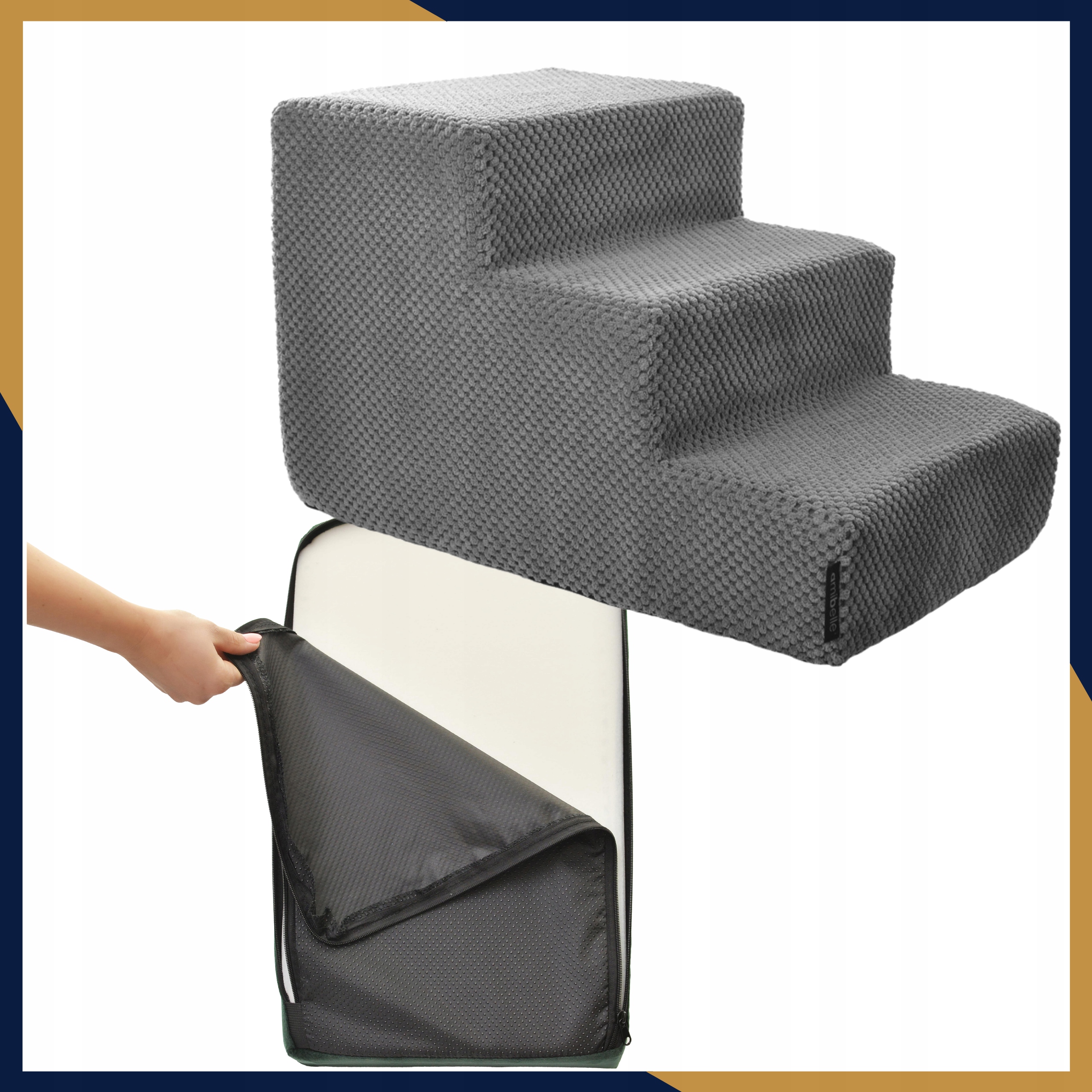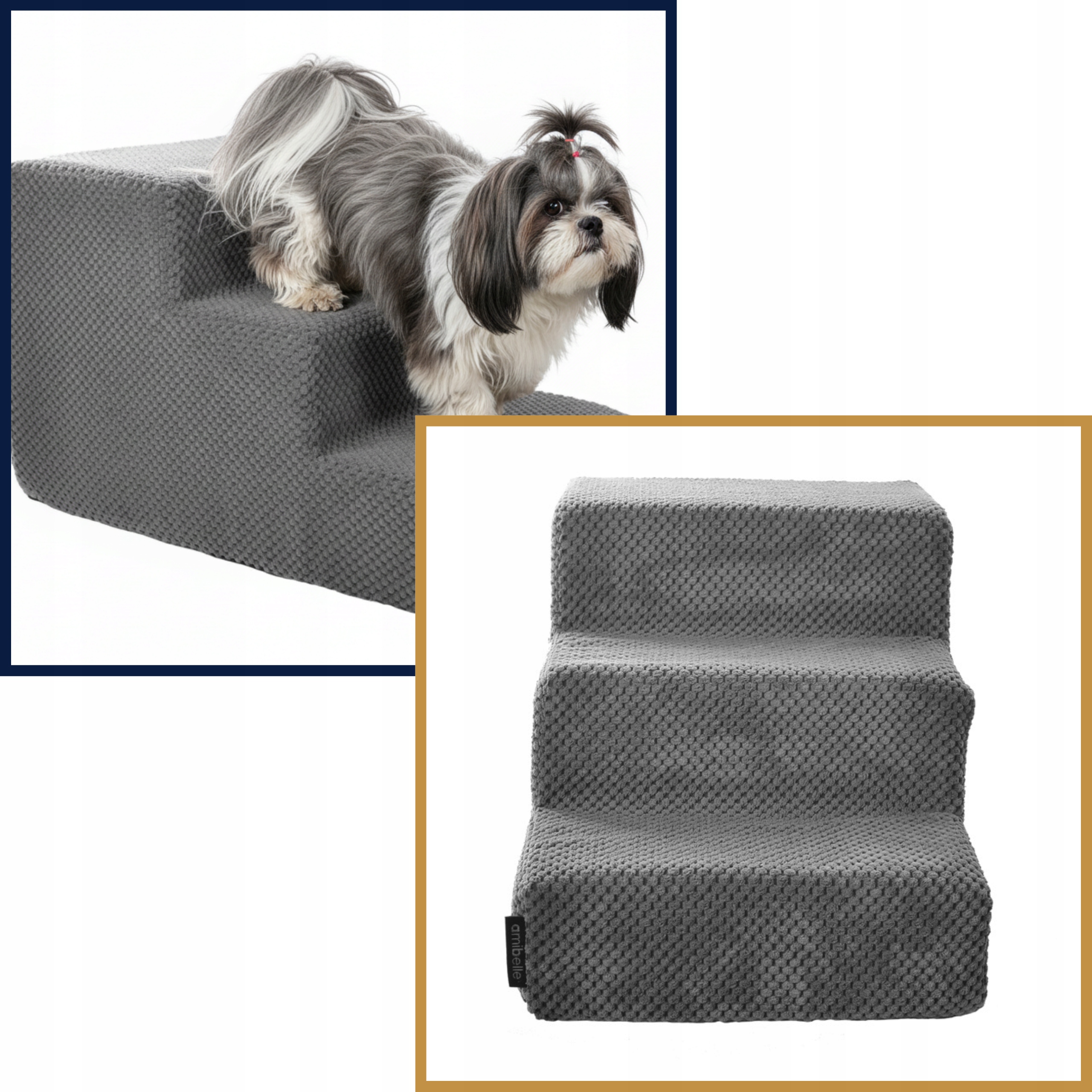 ? Schody Amibelle to doskonałe rozwiązanie dla młodych, małych lub starszych zwierząt, które mają trudności z wchodzeniem na wyższe powierzchnie. Dzięki 3 stopniom i odpowiedniej wysokości, ułatwiają wchodzenie na kanapę, łóżko czy do samochodu, zapewniając wygodę i bezpieczeństwo.