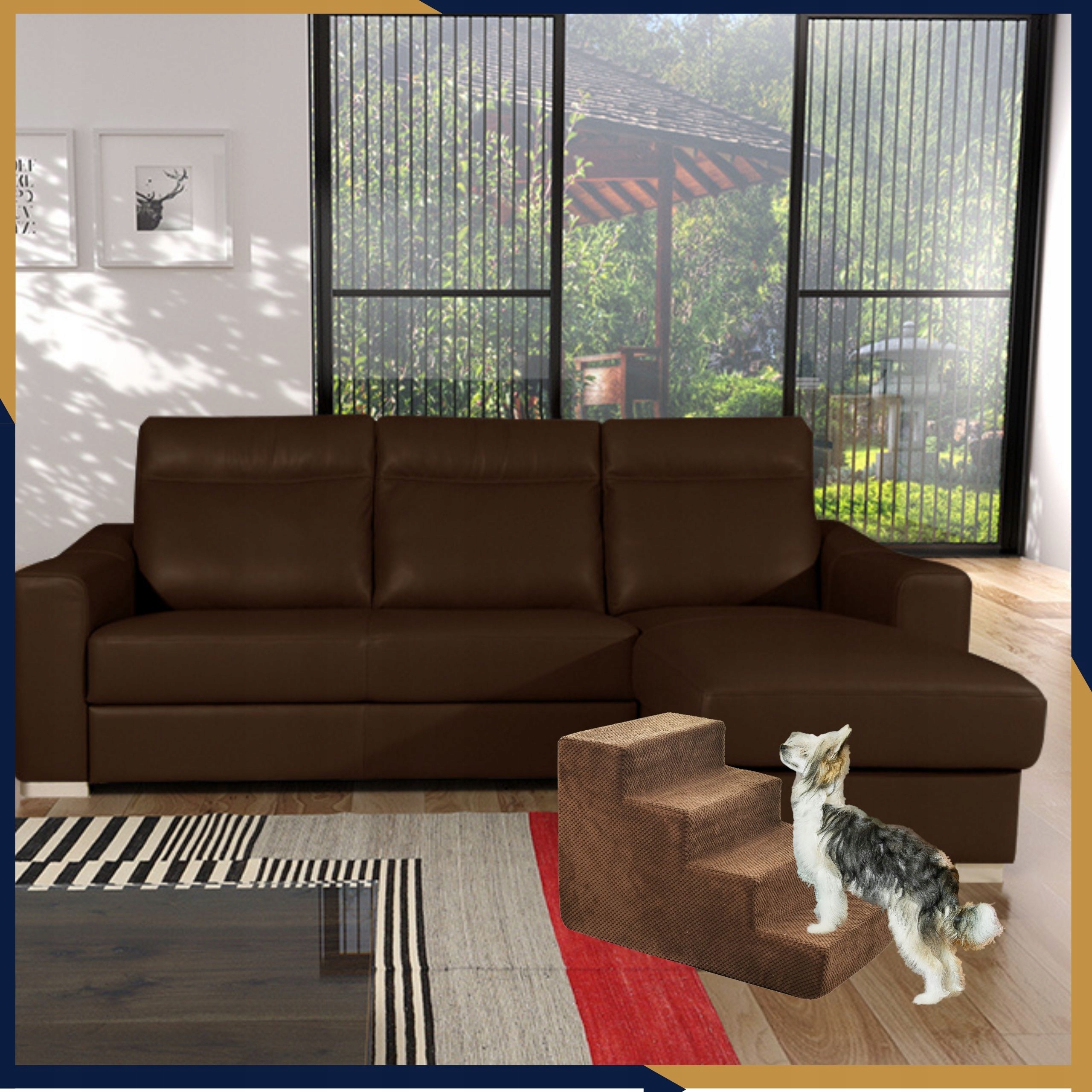 Schody zostały zaprojektowane głównie z myślą o małych i średnich psach oraz kotach. Dla większych psów mogą być zbyt niskie.