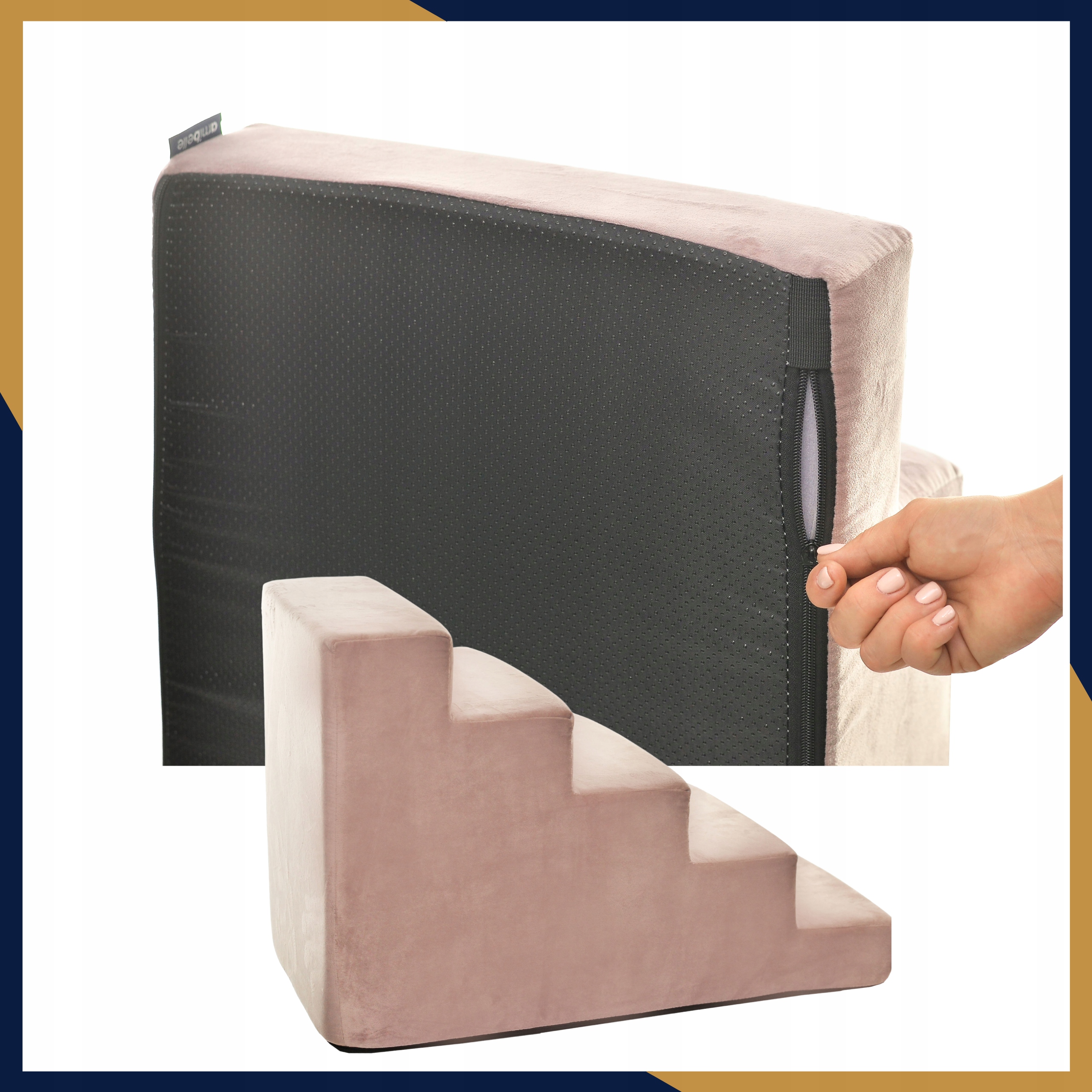 ✅️Schody Amibelle Velvet 5 w subtelnym odcieniu pudrowego różu to idealny wybór dla właścicieli, którzy cenią sobie delikatną estetykę i najwyższą dbałość o zdrowie swojego pupila. Stanowią niezastąpione wsparcie dla małych, starszych oraz chorych zwierząt, które muszą unikać skakania. Pięć stopni i wysokość 50 cm gwarantują bezpieczne i bezstresowe wejście na wysokie łóżka czy kanapy.
